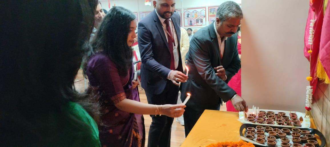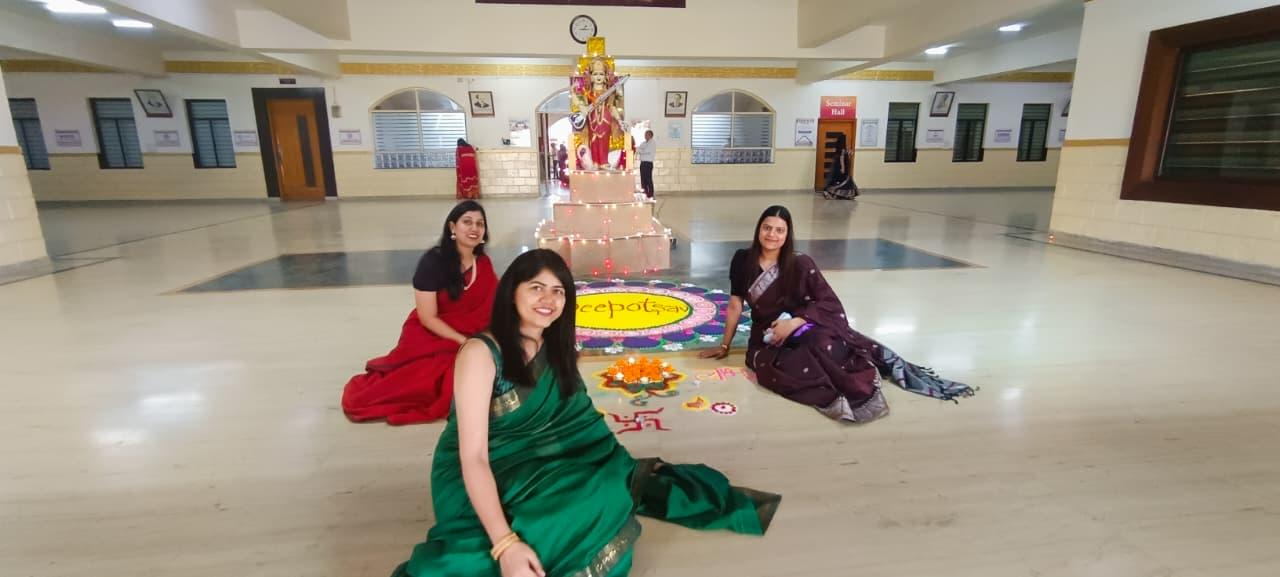The celebration began with a traditional Diwali pooja, invoking blessings of prosperity and happiness. The entire campus radiated festive charm with beautiful decorations, vibrant rangolis, and glowing diyas, creating an atmosphere filled with warmth and positivity. Faculty members participated wholeheartedly in various activities, making the evening lively and memorable.