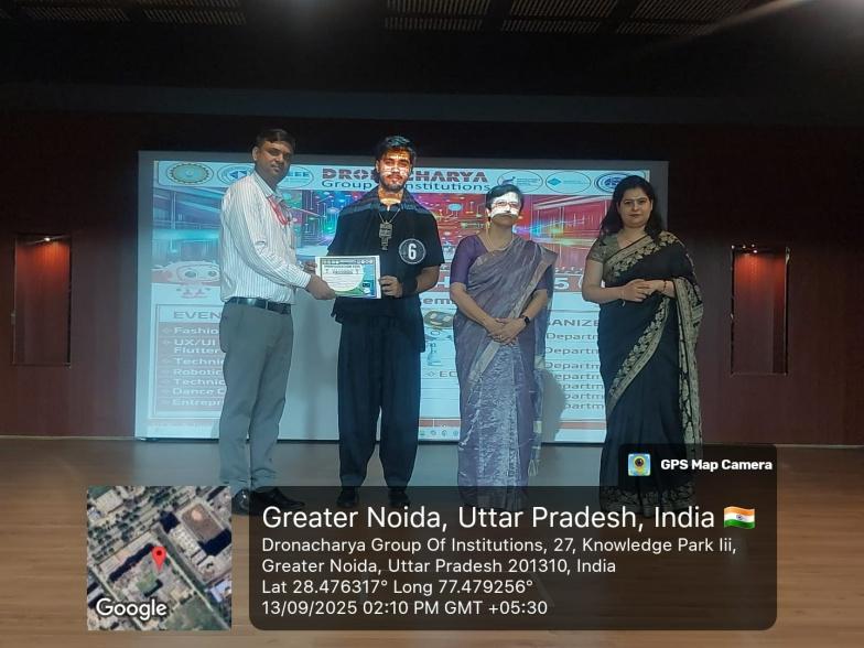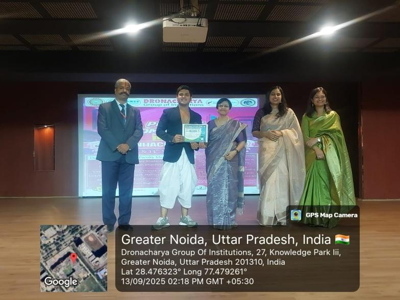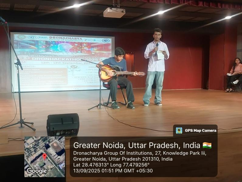 Dronacharya Group of Institutions, Greater Noida, organized Dronhackathon 2025, a two-day blend of Technical and Cultural competitions on 12th–13th September 2025. The event created an energetic platform for students to present their innovative projects, problem-solving approaches, and creative skills in both hardware and software domains. Supervised by Dr. Sangeeta Mangesh Karyakarte (Director, DGI) and Prof. (Dr.) Shailesh Kumar Singh (Registrar, DGI), the event was coordinated by Prof. Sanghamitra V. Arora with the support from faculty members across departments.