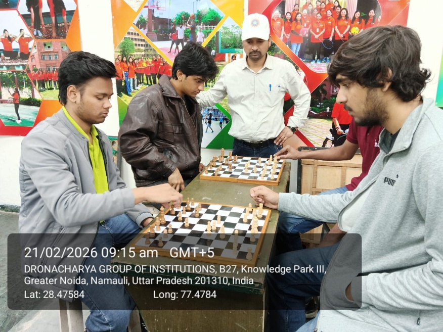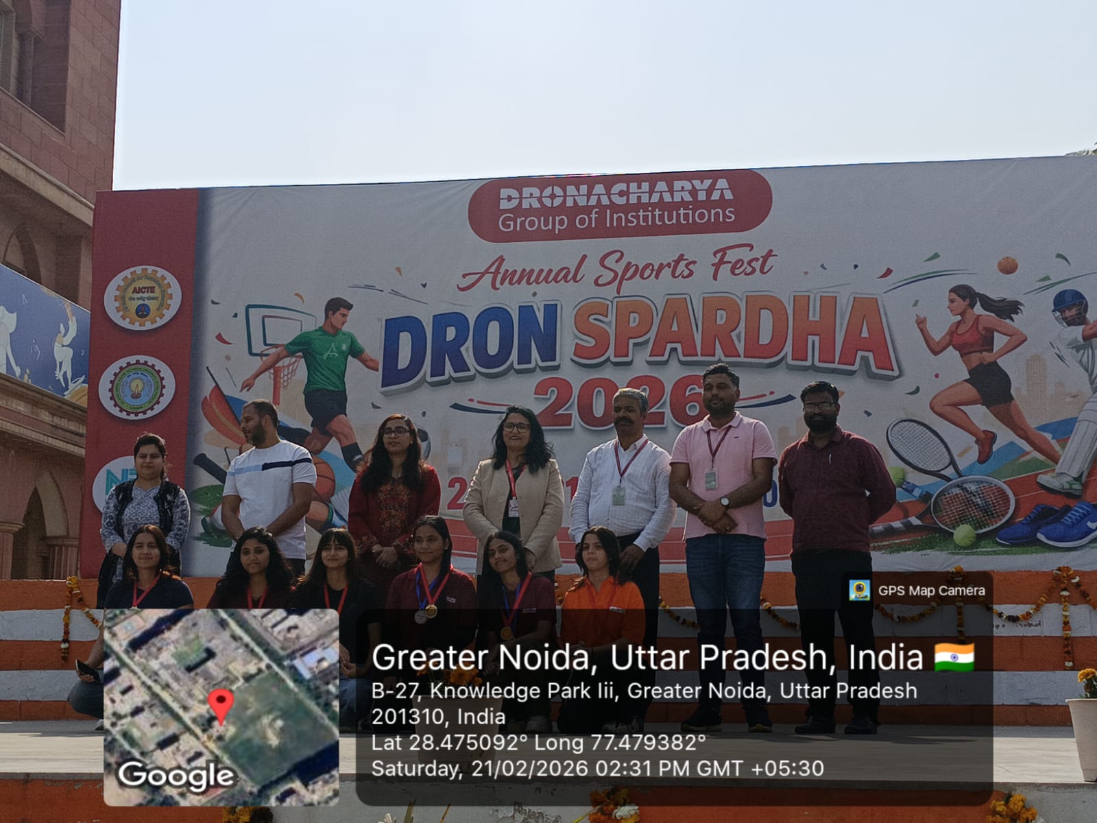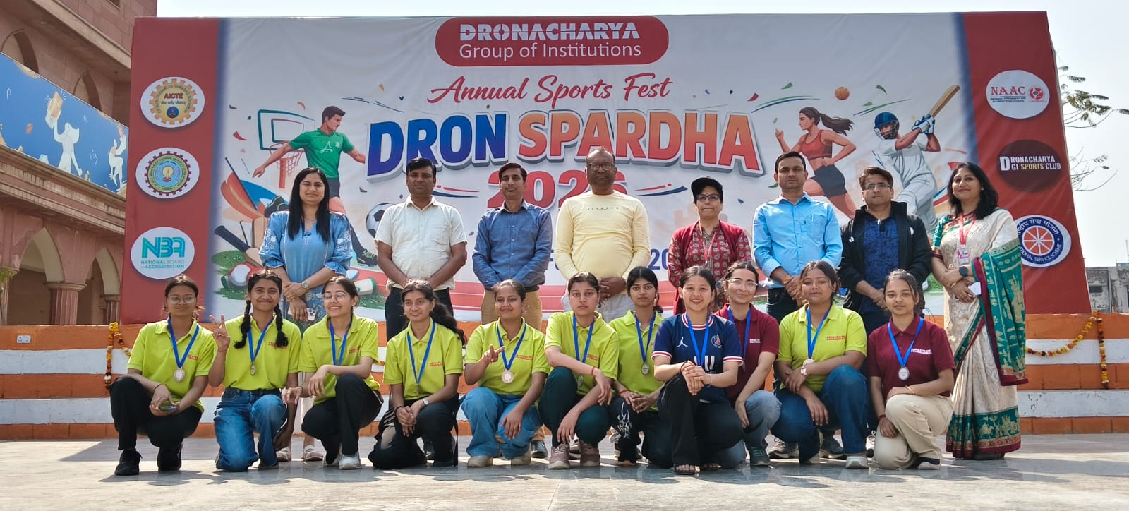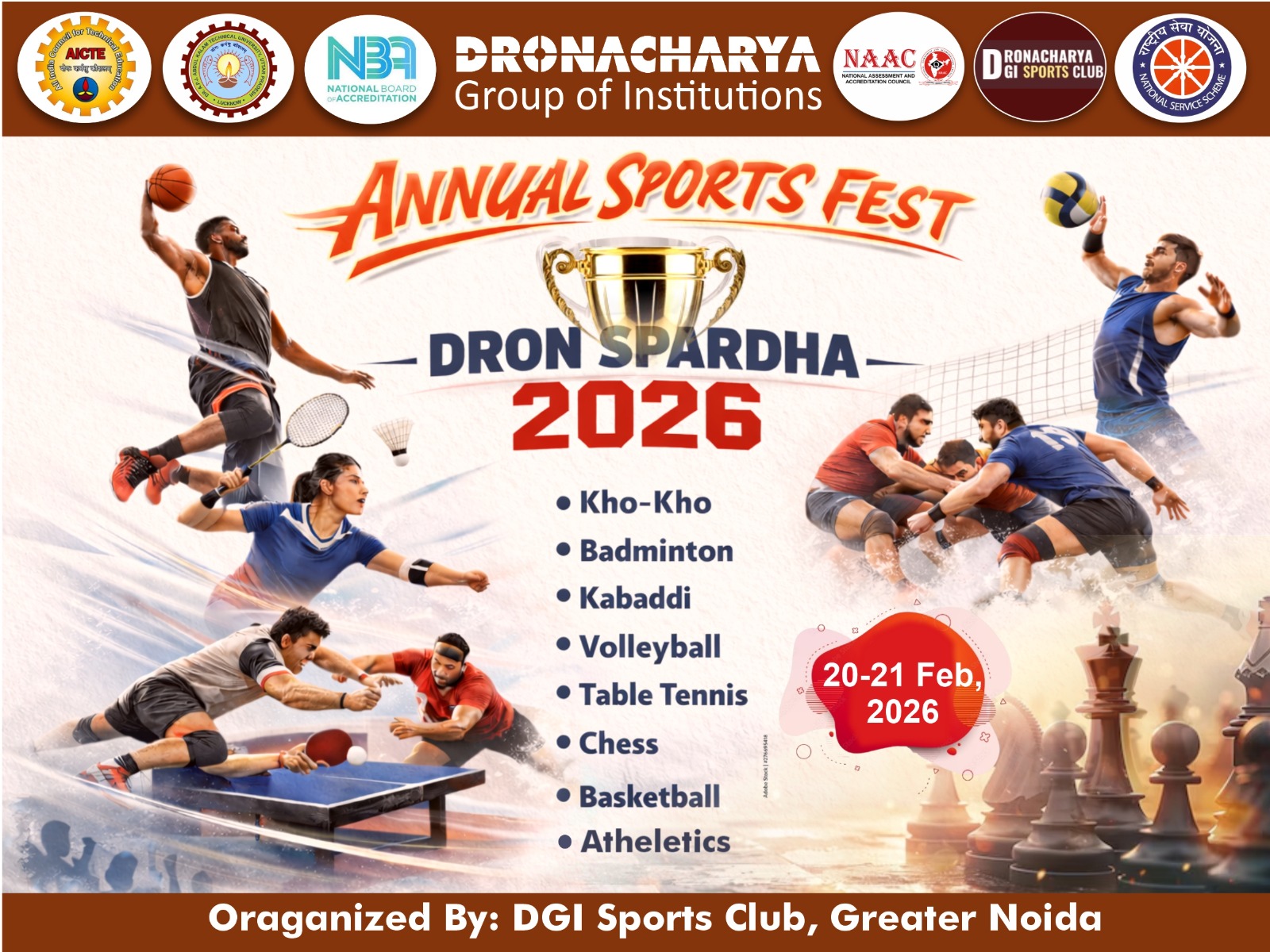 Sports Club, Dronacharya Group of InstitutionsorganisedAnnual Sports Meet, Dron Spardha 2026, was on 20th and 21st February 2026 at the college Sports Ground and various sports arenas. The event was structured on the pattern of the AKTU Zonals Sports Inclusion format to facilitate screening and selection of talented athletes for higher inter-university competitions. More than 500 registered students participated enthusiastically over the two days, competing separately in boys’ and girls’ categories across eight major sports disciplines. Faculty and student coordinators were appointed for each sport to ensure the smooth and systematic conduct of all events.