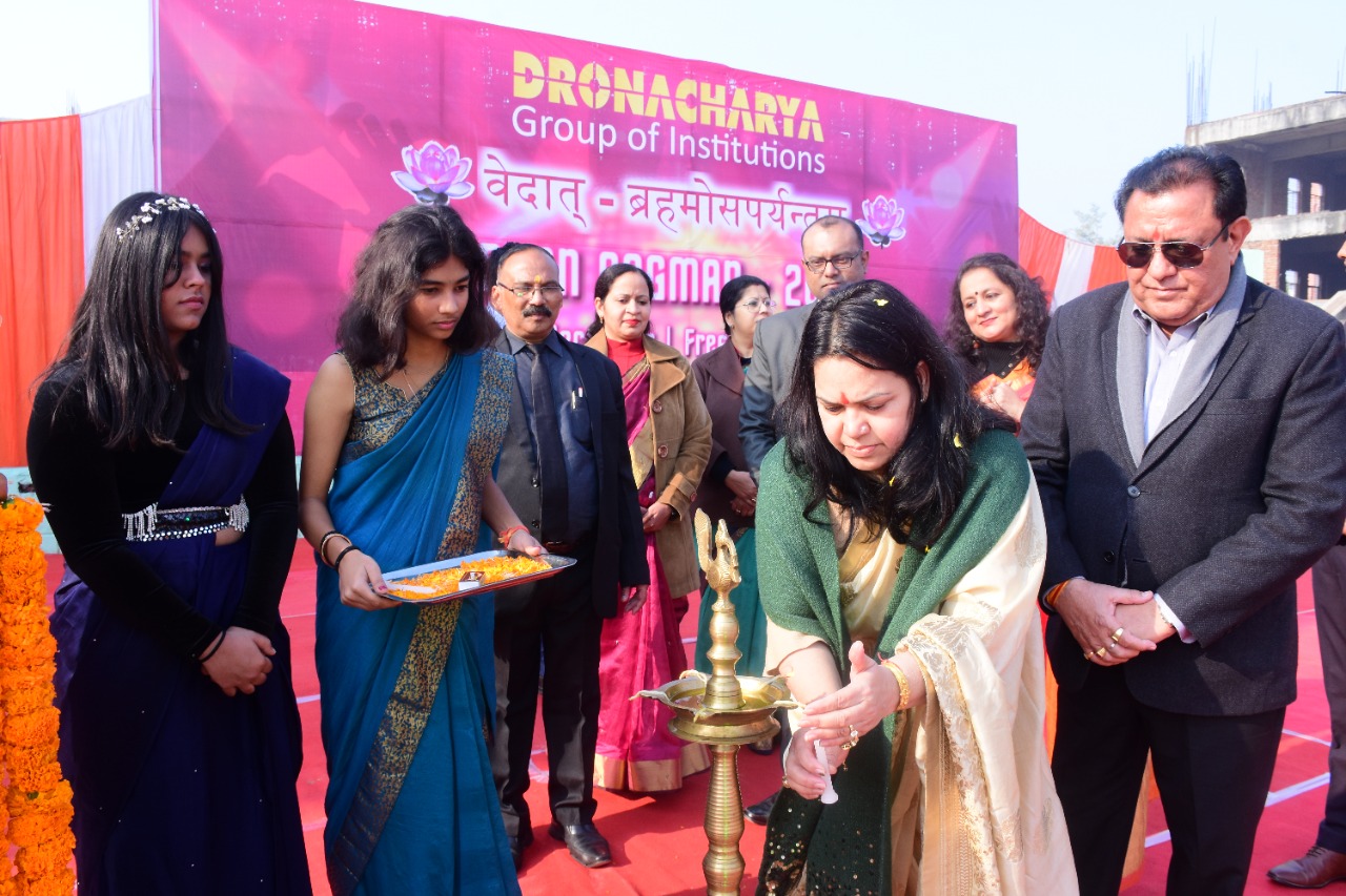 The event started with welcoming of chief guest Dr. Satish Yadav (Chairman Dronacharya Group of Institutions, Greater Noida) followed by lamp lighting and releasing colorful balloons in the air. After the motivating speech by the chief guest, the much awaited cultural event started. The seniors presented wonderful pieces of singing and dances which included single and group dance performances, presentation of solo and duet songs and melodious tunes by way of instrument playing. Student achievers of different arenas were given mementoes to heighten their spirits.