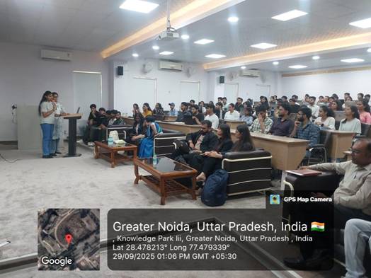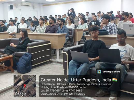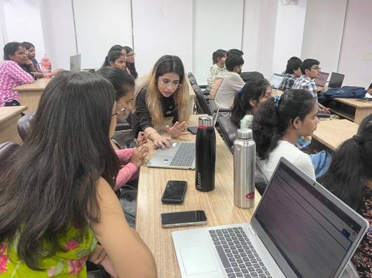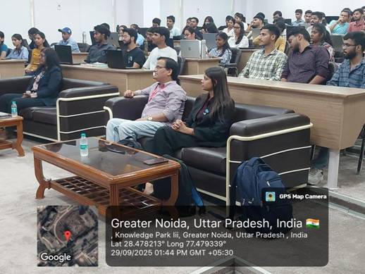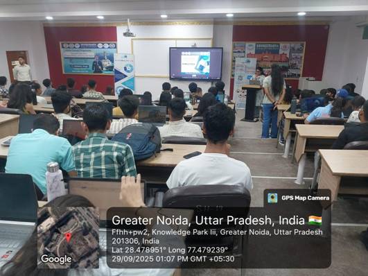 The session was led by expert speakers — Ms. Divisha, Ms. Ankita, and their team from AlgoCirrus Pvt. Ltd. — who shared their industrial insights and guided the students through interactive learning exercises. Their engaging approach encouraged active participation, allowing students to apply theoretical concepts in a simulated business environment. This interactive learning experience not only strengthened their technical foundation but also boosted their problem-solving, innovation, and analytical thinking skills.