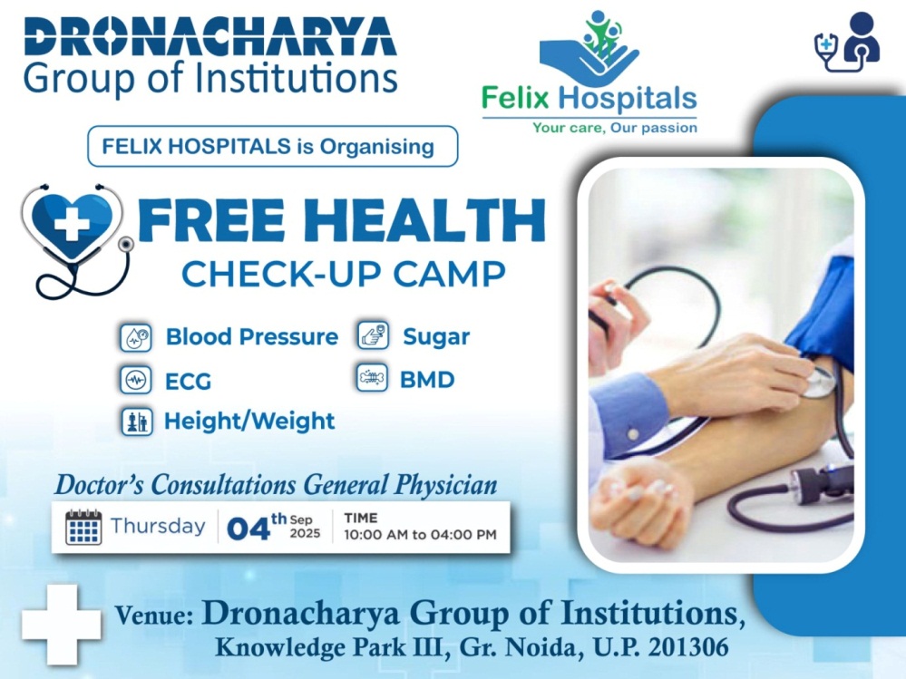 Through this meaningful initiative, Dronacharya Group of Institutions reaffirmed its commitment to social responsibility and holistic community development. The collaboration with Felix Hospitals reflected the institution’s dedication to nurturing a health-conscious, socially aware, and compassionate society, aligning with its broader vision of fostering both academic excellence and societal well-being.