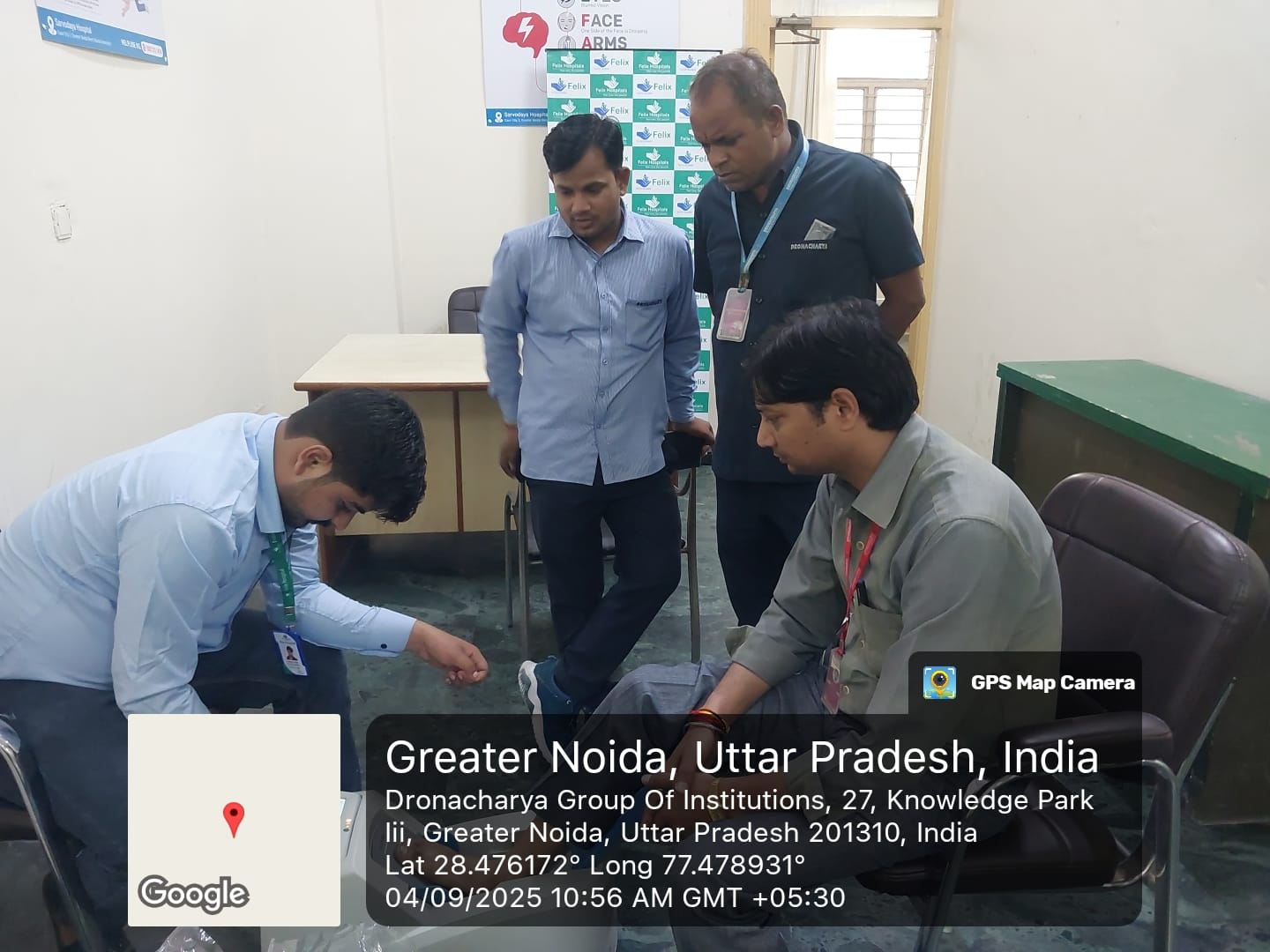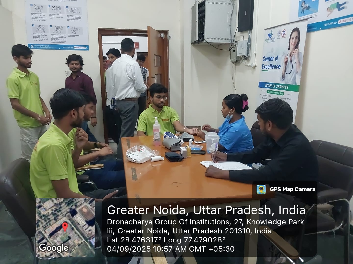 NSS Units of Dronacharya Group of Institutions, Greater Noida, in association with Felix Hospitals, organized a Free Health Check-Up Camp on 4th September 2025 as part of the institution’s ongoing community outreach initiative. The camp was conducted at the college campus from 10:00 AM to 4:00 PM, aimed to promote health awareness, preventive care, and general well-being among residents of nearby localities.