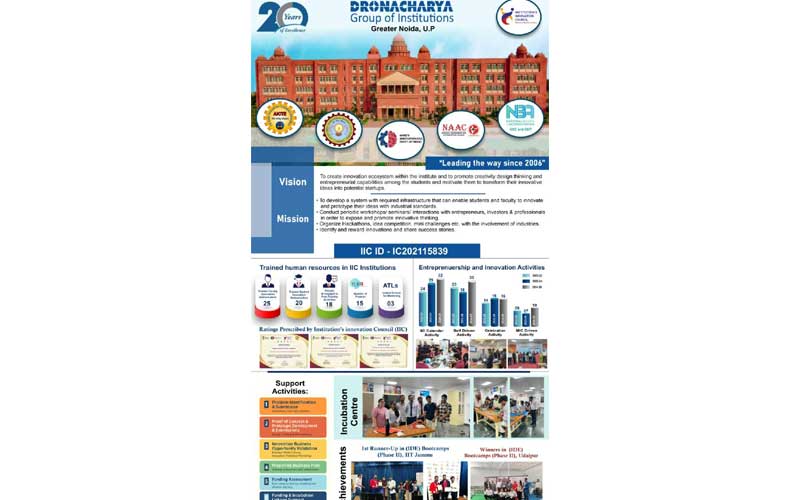 From Dronacharya Group of Institutions, Greater Noida (DGI), Innovation Ambassadors—Prof. Sanghamitra V Arora, Ms. Kajol Kathuria and Dr. Saket Kumar—participated in the event along with five student teams selected for the Yukti Innovation Challenge (YIC) to showcase their project models.
