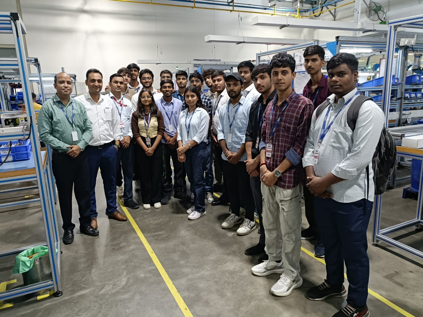 The visit was organized with the objective of bridging the gap between theoretical learning and industrial application. It aimed to provide students with practical exposure to manufacturing, assembly, and calibration processes, as well as insights into quality assurance, workplace safety, and automation practices.