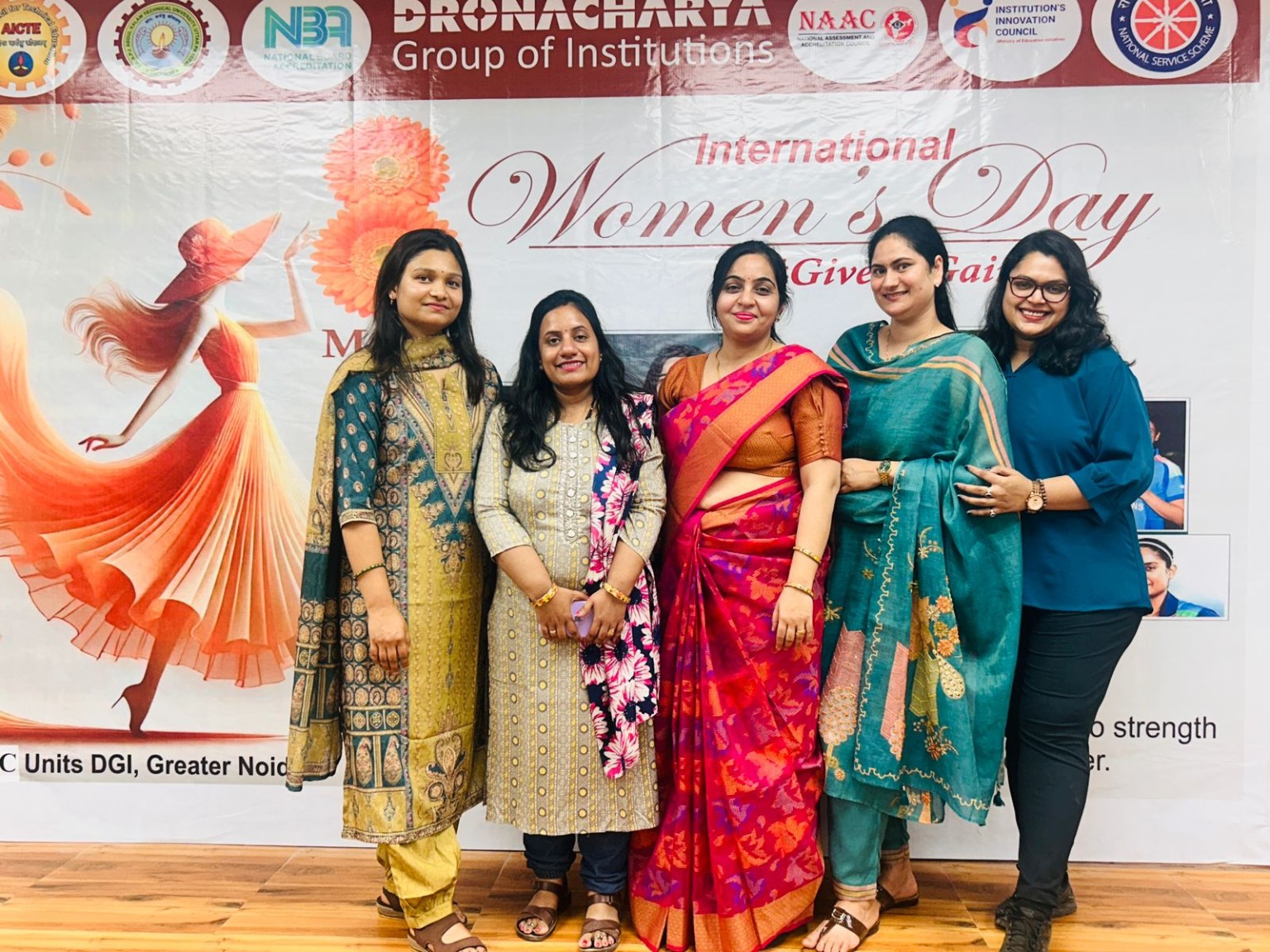 Overall, the International Women’s Day celebration at Dronacharya Group of Institutions was conducted in a lively and joyful manner. The combination of games, cultural performances, and meaningful interaction ensured that everyone enjoyed the event thoroughly. The program concluded on a positive note, leaving behind cherished memories and a renewed sense of appreciation for the strength and achievements of women.