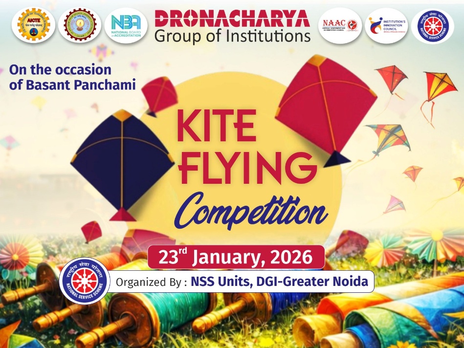 On the auspicious occasion of Basant Panchami, the NSS Units of Dronacharya Group of Institutions (DGI) successfully organised a Kite Flying Competition on 23rd January 2026, which witnessed enthusiastic participation from faculty members, staff, and students. The event added vibrancy and joy to the festive celebrations and fostered a spirit of unity and cultural harmony across the campus.