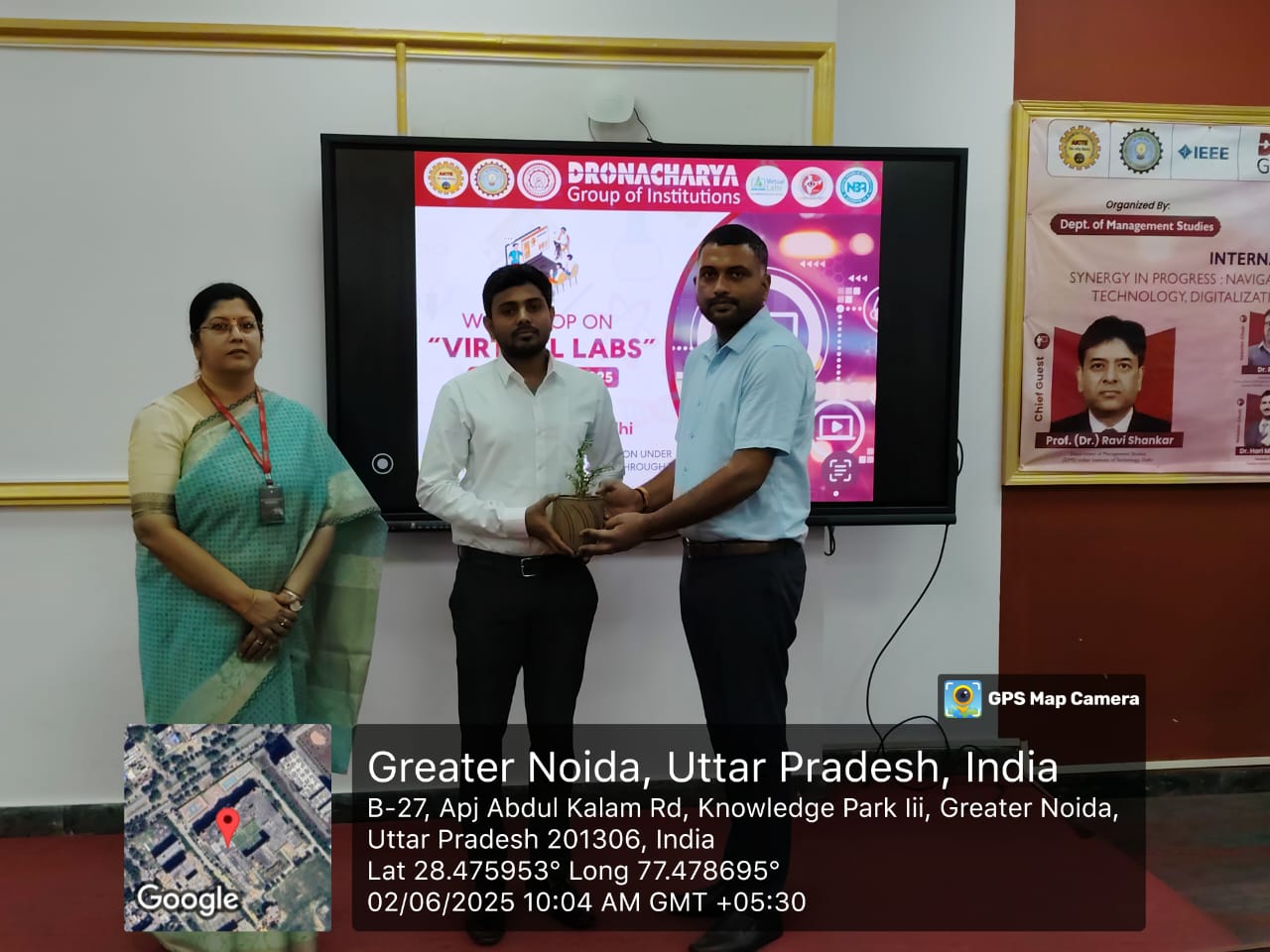 Dronacharya Group of Institutions, Greater Noida, in collaboration with IIT Delhi, organized a one-day workshop on “Virtual Labs” on 2nd June 2025. The workshop aimed to provide hands-on experience in using digital laboratory simulations to enhance students’ conceptual understanding through interactive tools.