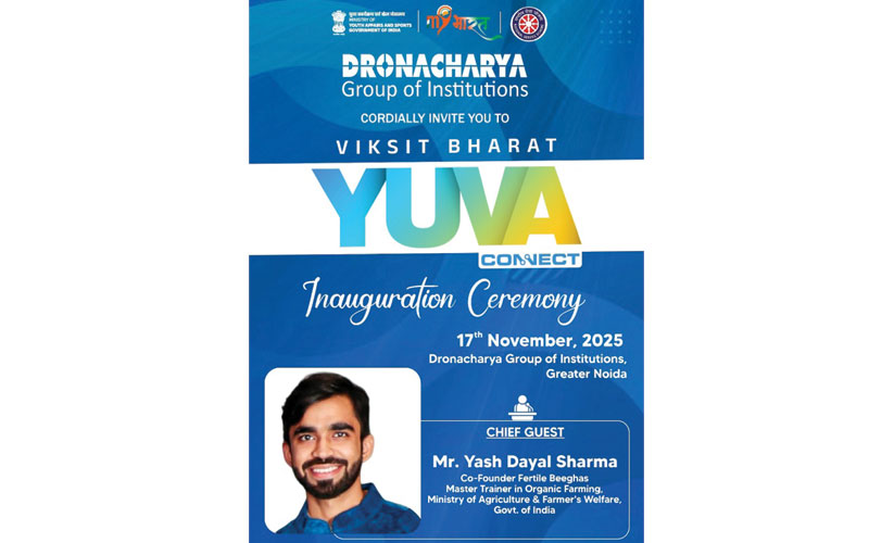 Dronacharya Group of Institutions, Greater Noida,hosted the “Youth Connect 2025” program organised by Ministry of Youth Affairs and Sports. The event took place on 17th November 2025 in the institute auditorium and witnessed the active participation of 237 students along with 10 faculty members. The session was graced by the presence of the Youth Icon of India, Mr. Yash Dayal Sharma, who served as the keynote speaker for the program.