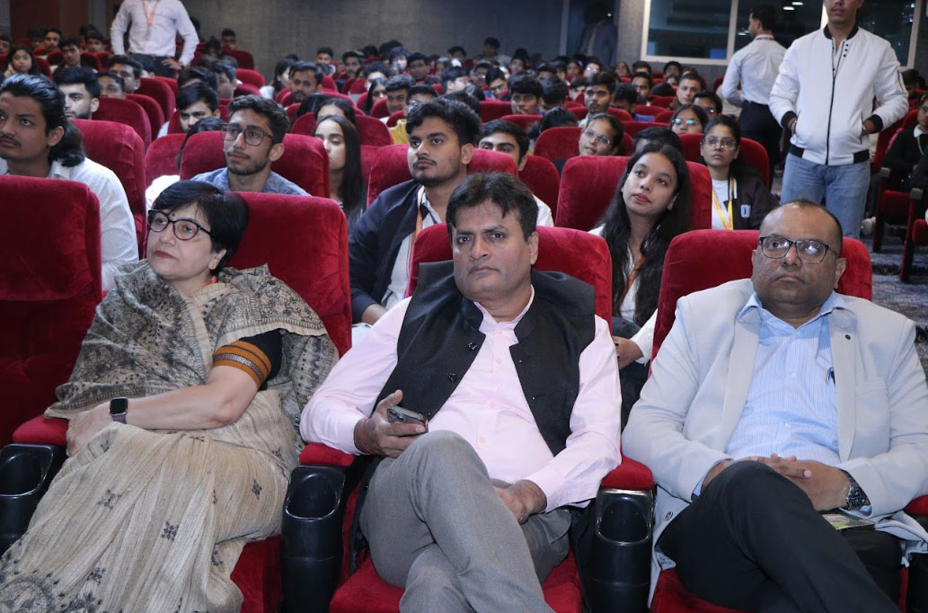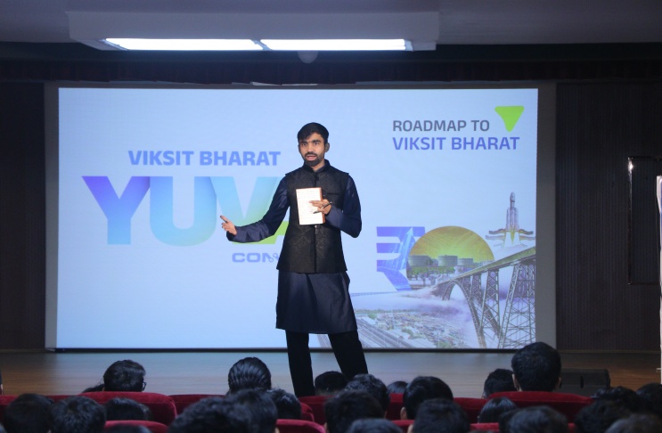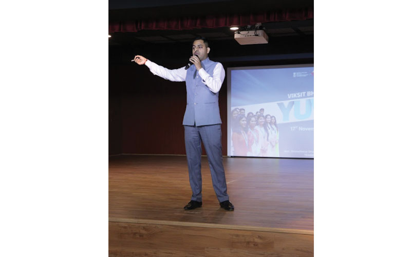 Mr. Yash Dayal Sharma then delivered a powerful motivational address, urging students to visualize a developed and self-reliant India by 2047. He emphasized the need for discipline, clarity of purpose, strategic thinking, and active community engagement among youth. Highlighting the critical role of young citizens in national development, he explained that progress requires conscious decision-making and a strong sense of personal responsibility.