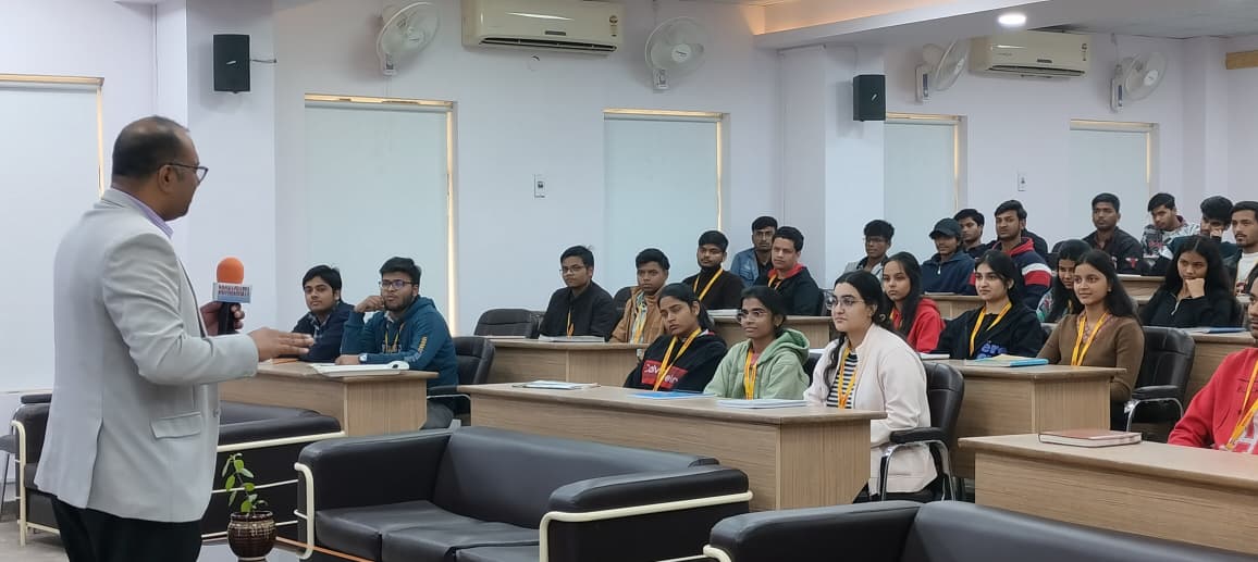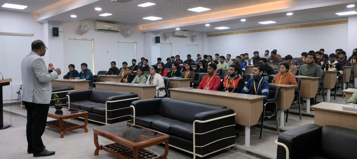 An expert talk was delivered by Dr. Bipin Pandey, Head of the CSE Department, who was formally welcomed by Dr. Pawan Sharma, Head of the First Year Department, with a planter presented as a gesture of respect. During his address, Dr. Pandey inspired students by discussing the evolution and future scope of computing, including emerging fields such as artificial intelligence, cybersecurity, cloud technologies, and automation. He highlighted the increasing demand for digitally skilled professionals and advised students to continuously upgrade their technical knowledge. Dr. Pandey also stressed the importance of ethical technology use - focusing on cybersecurity awareness, digital hygiene, and responsible online behavior.