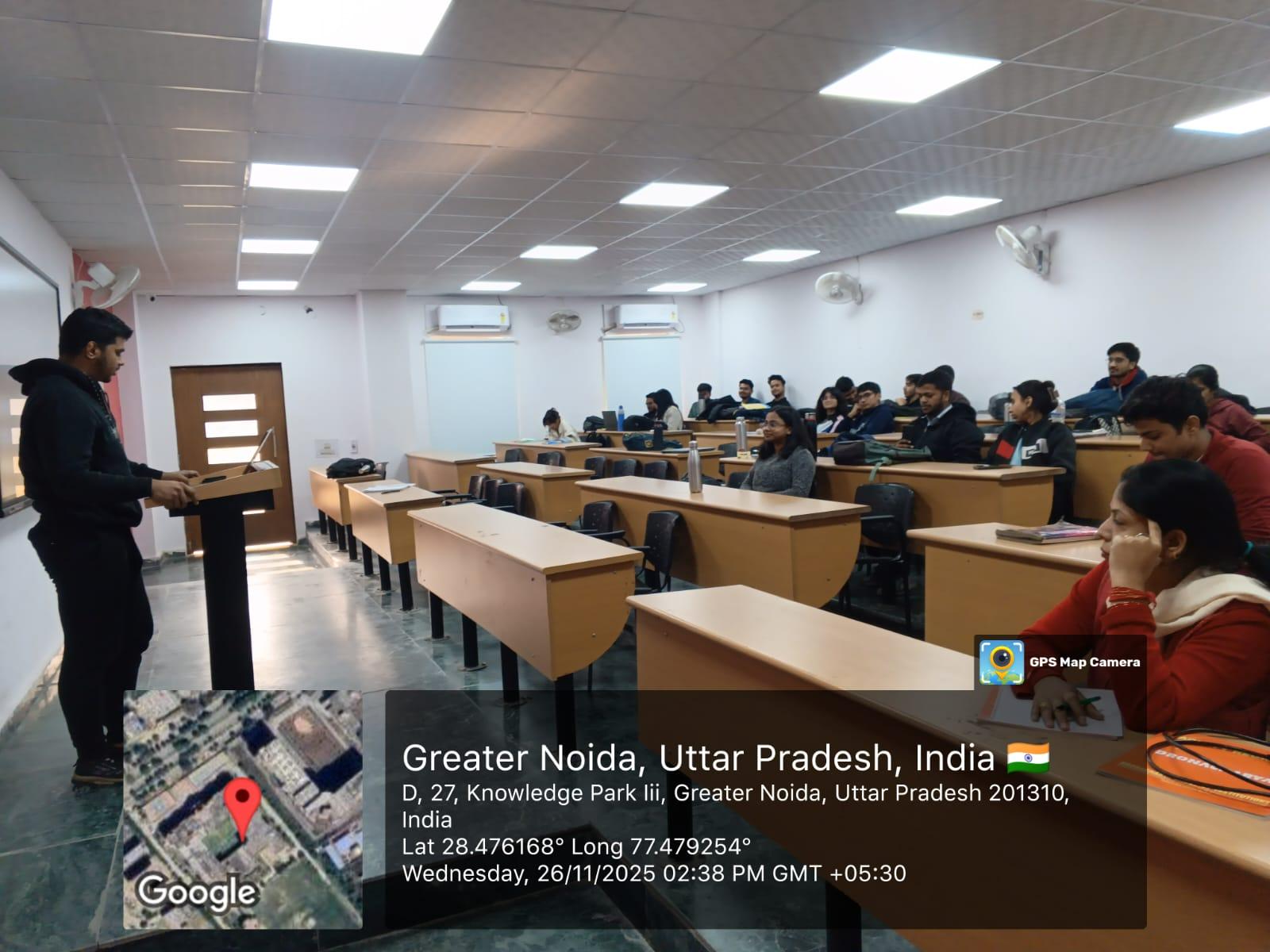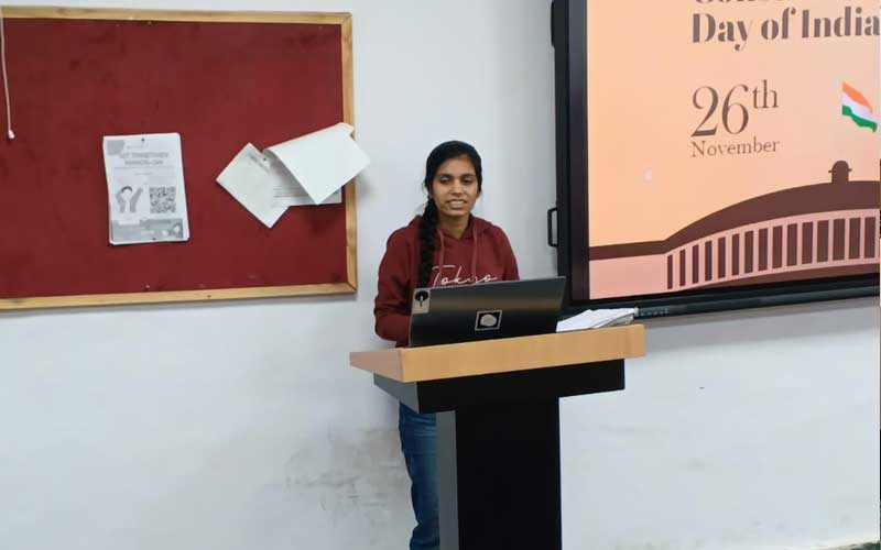 To encourage curiosity and intellectual engagement, the institution organised an Inter-Departmental Quiz Competition on the Indian Constitution. The quiz covered a wide range of topics including constitutional history, fundamental rights and duties, structure of government, amendments, landmark judicial decisions, and the drafting process. Students from various departments formed teams and competed with great enthusiasm. The rounds grew progressively challenging, showcasing the students’ presence of mind and deepening their awareness of constitutional governance. The winning teams were honoured with certificates and appreciation for their outstanding performance.