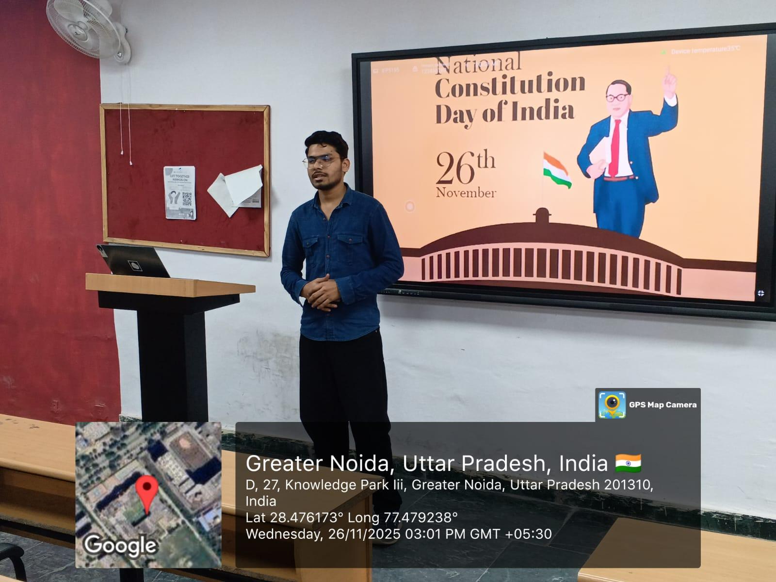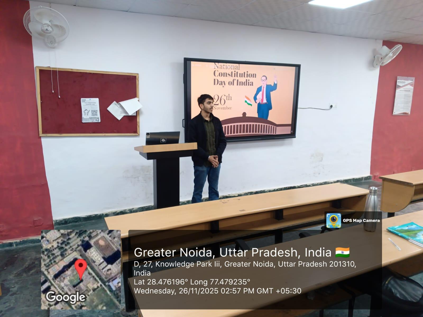 NSS Unit ofDronacharya Group of Institutions, Greater Noida celebrated National Constitution Day with great enthusiasm and patriotic fervour. National Constitution Day also known as Samvidhan Diwas. The event aimed to honour the adoption of the Indian Constitution and to create awareness among students about the values, rights, and duties it enshrines.