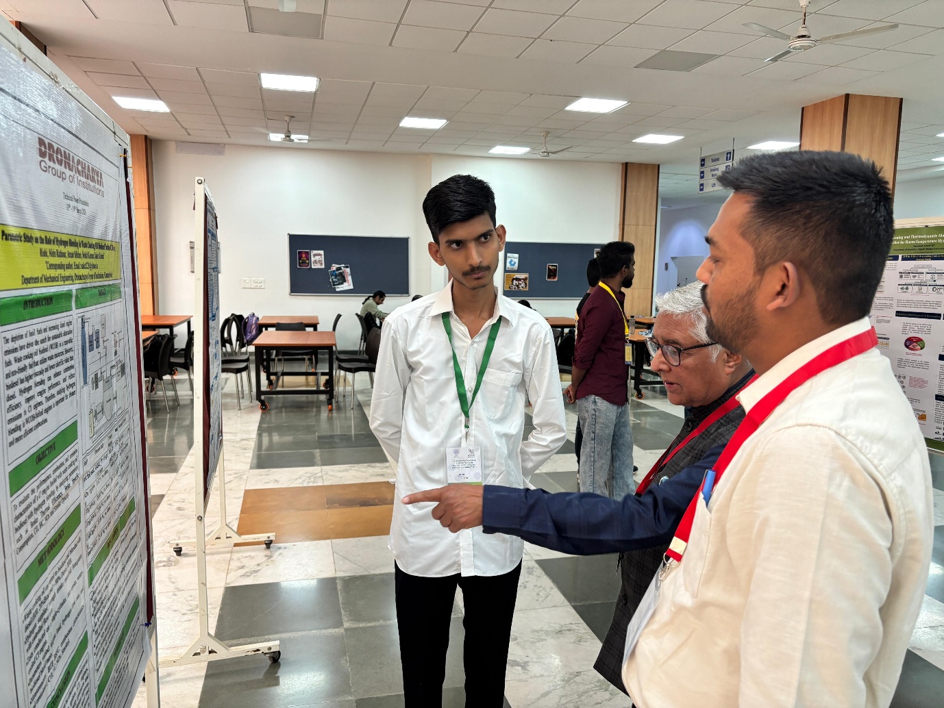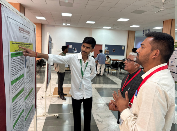 As part of the poster presentation segment, Mr. Rishi (third year) and Mr. Krishna Aggarwal (second year) showcased their research work under the mentorship of Dr. Saket Kumar. Rishi presented the research work of third-year students through a poster titled “Parametric Study on the Role of Hydrogen Blending and Oxygen Enrichment in Ammonia Engine Combustion,” highlighting innovative approaches to improving combustion efficiency. Krishna Aggarwal represented the research findings of second-year students by presenting a poster titled “Thermodynamic Equilibrium Analysis of Steam and Dry Reforming of Methane-Ethane-Glycerol Mixtures for Hydrogen Production,” focusing on sustainable hydrogen generation techniques. Both presentations reflected strong research orientation, analytical thinking, and innovative problem-solving approaches.