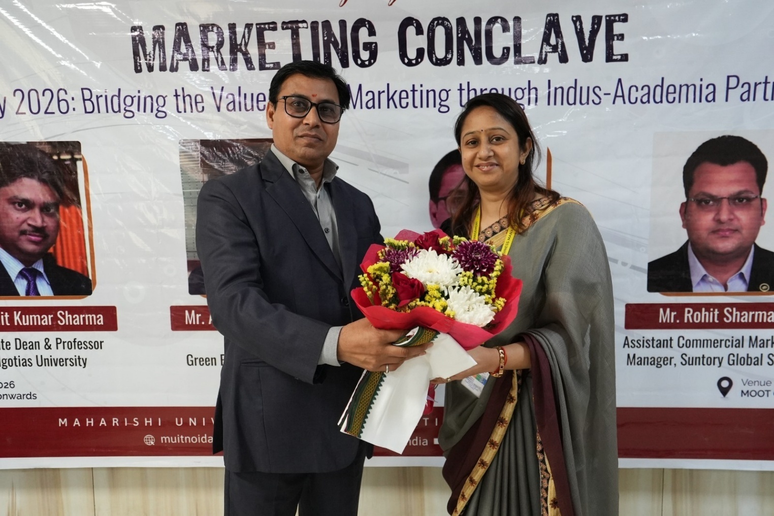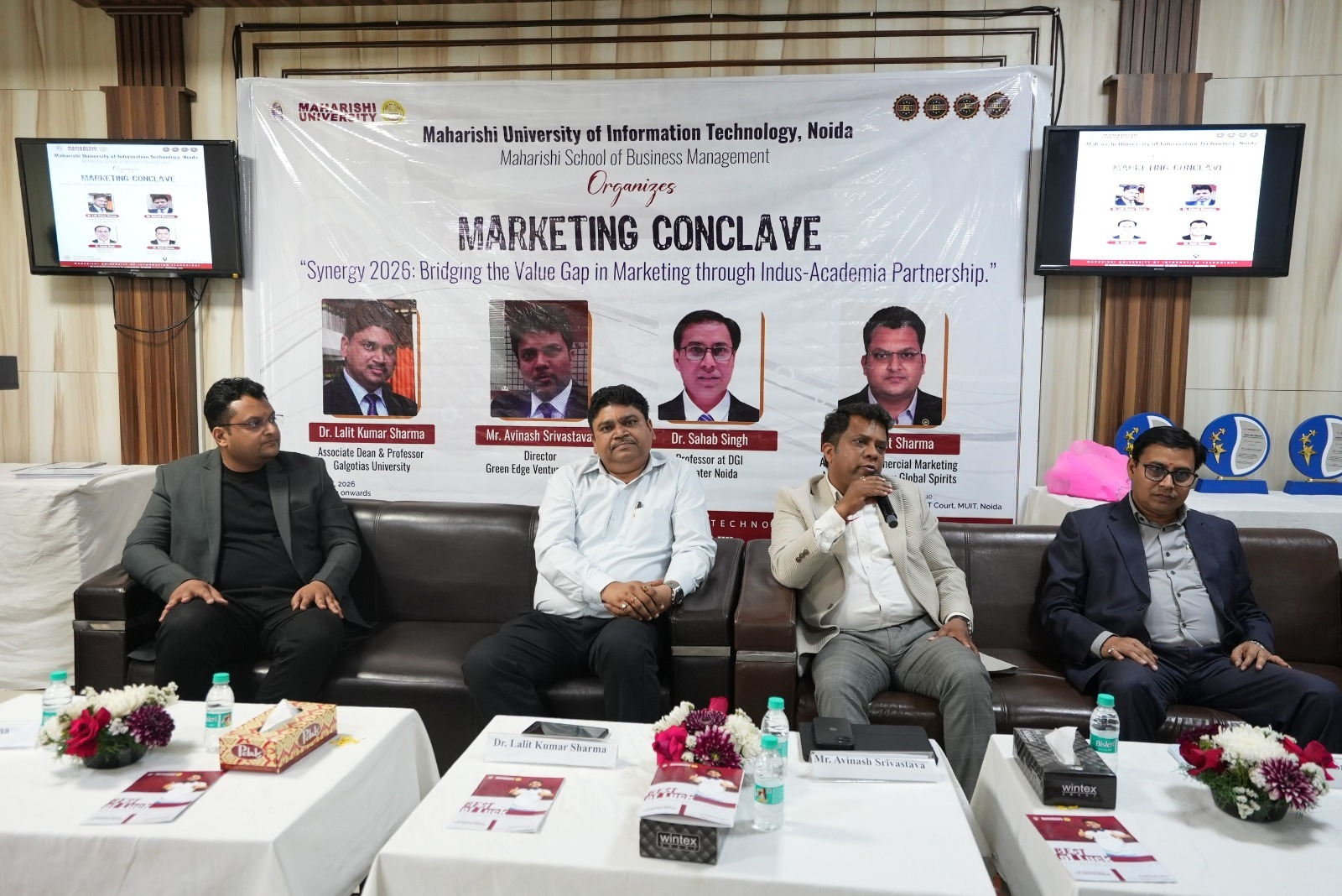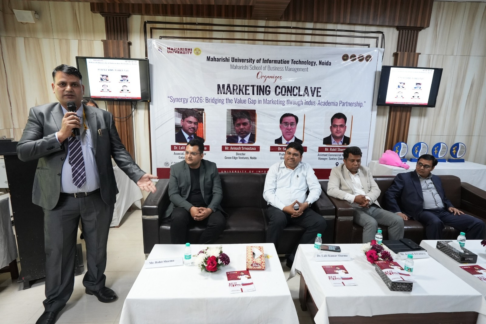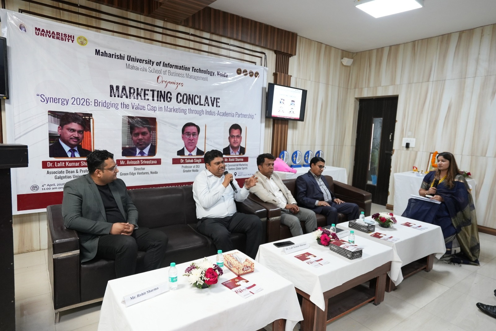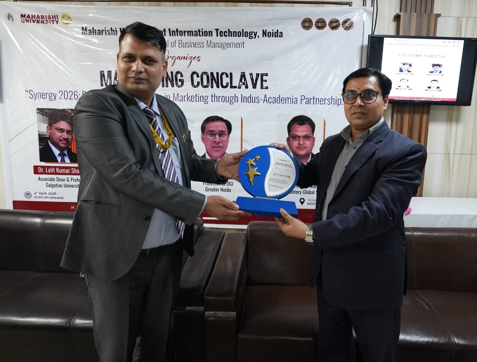 Dr. Sahab Singh(Professor, MBA)of Dronacharya Group of Institutions, Greater Noida, was invited as a keynote speaker and delivered an insightful address on “Sustainable & Ethical Marketing through Partnership”atMarketing Conclave titled“Synergy 2026: Bridging the Value Gap through Industry - Academia Partnership” on 4thApril 2026at Maharishi University of Information Technology, Noida.The event brought together distinguished academicians and industry professionals to deliberate on strengthening collaboration between industry and academia for developing future-ready professionals.